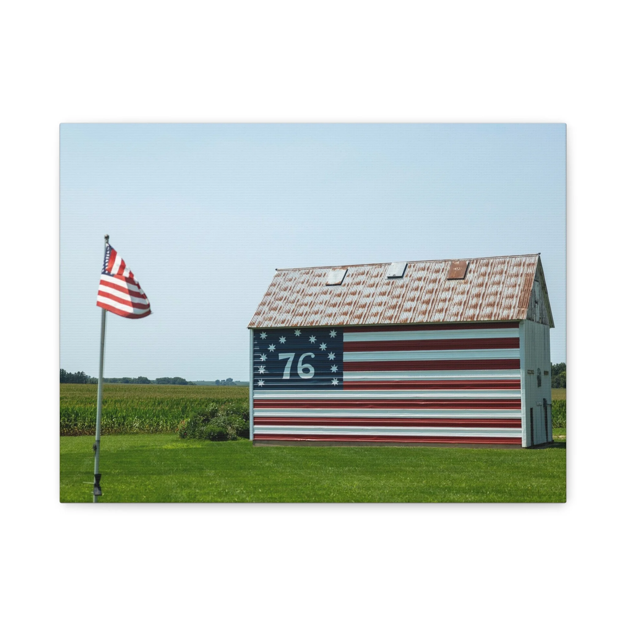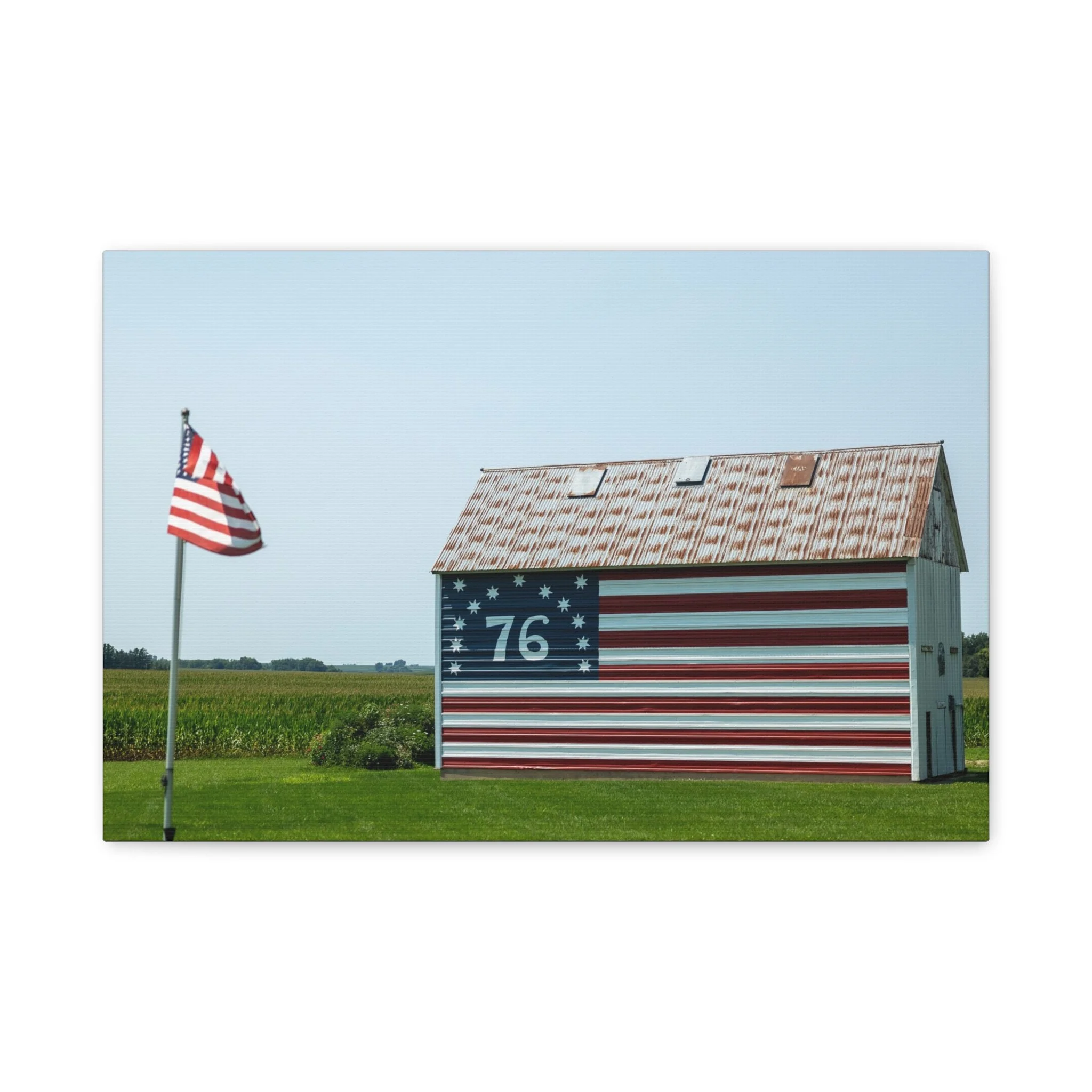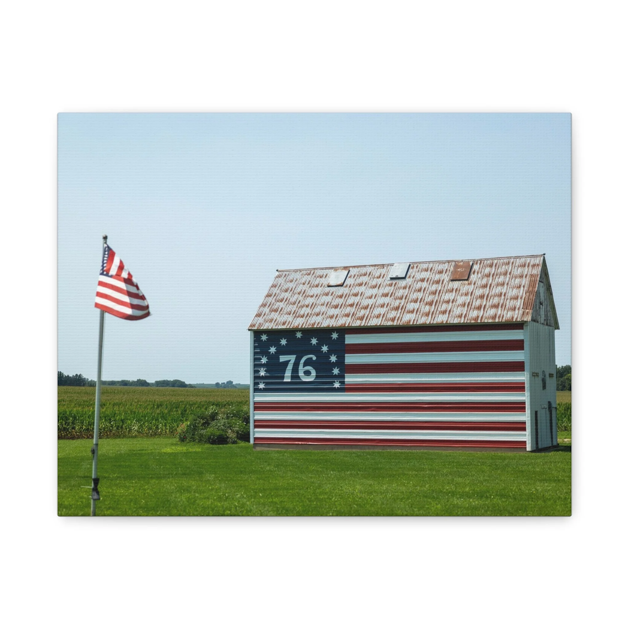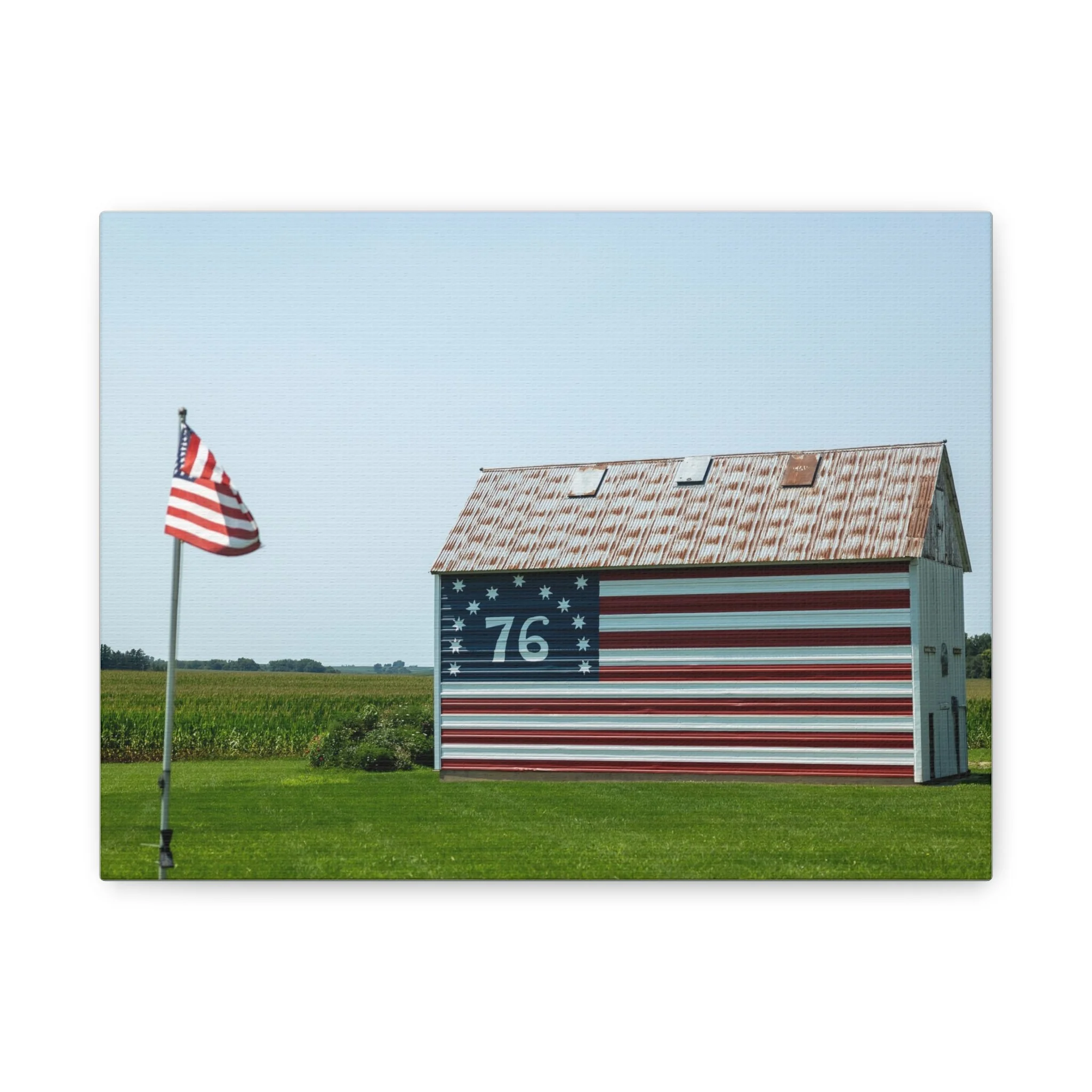 Patriotic Barn Flag Canvas — 1776 Americana Matte Stretched Wall Art