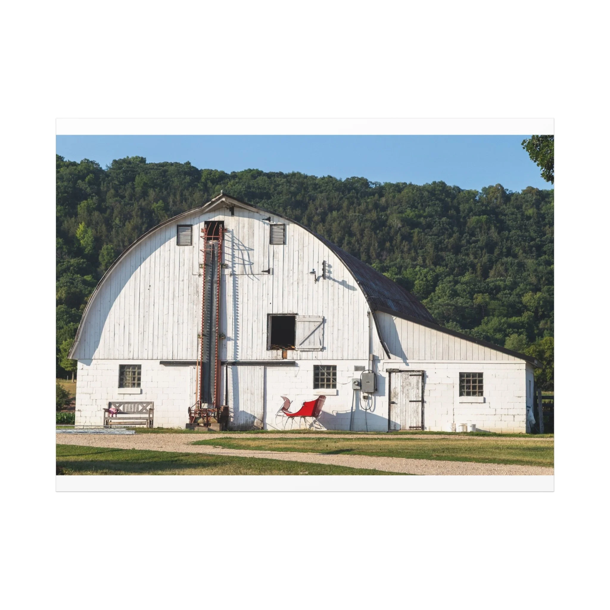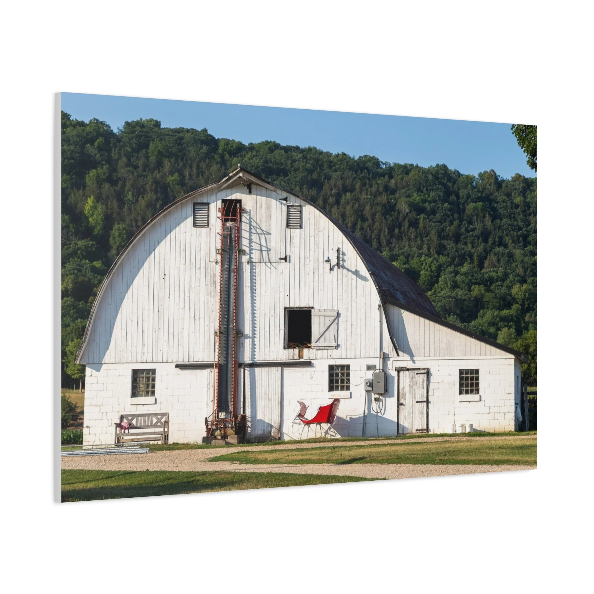 This stretched matte canvas brings a quiet slice of Americana to any room. A sunlit field, a flagpole fluttering, and a barn painted with a historic 76 motif sit calm and steady on a soft blue sky—an image that feels lived-in and rooted. The low-reflective matte finish keeps the colors true without glare, while the stretched cotton-poly canvas and pine inner frame give the piece a warm, handcrafted presence. Hang it in a living room, entryway, or study to anchor the space with a sense of open land, tradition, and thoughtful restraint. The subtle texture of the canvas and the gentle depth of the 1.25" profile make it feel like a quiet memory you can walk up to and touch.